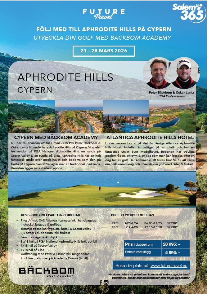 Oskar Lantz till underbara Aphrodite Hills på Cypern. Vi spelar