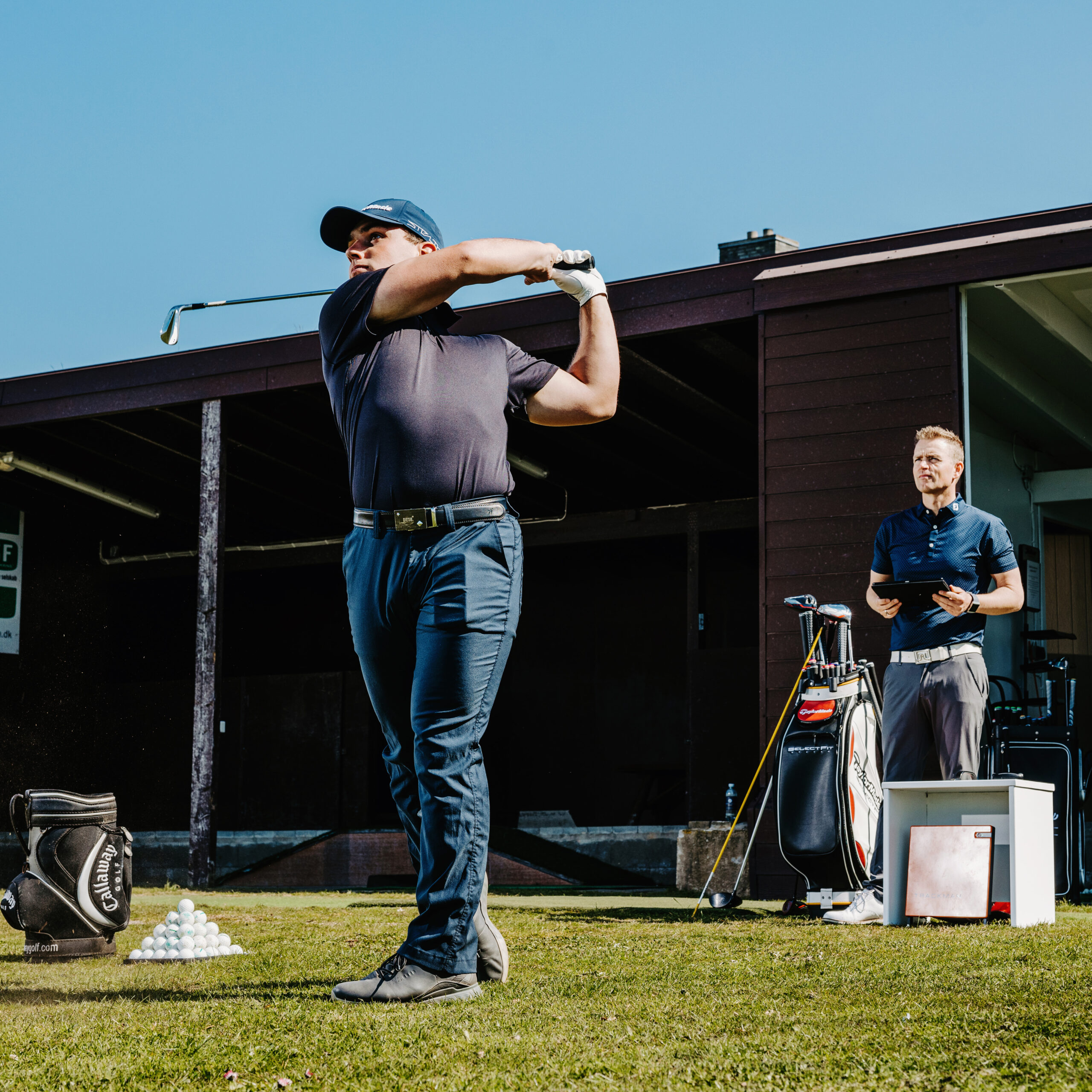 Klubborna ska helst slås och utvärderas på en driving range där man kan följa bollflykten. Med hjälp av TrackMan får René även fram massor av värdefull data om klubba och boll som inte är synliga för blotta ögat.